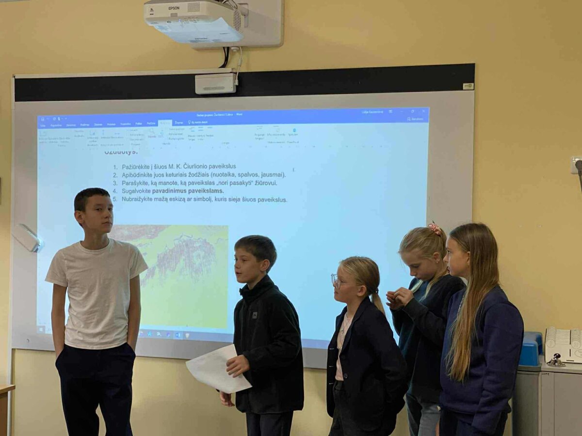 Pamokų metu mokiniai aptarinėjo Čiurlionio paveikslus, kūrė pagal juos istorijas, tapė savo darbus, klausėsi simfoninės poemos „Jūra“ ir muziką perteikė spalvomis. Jie analizavo menininko kūrinius, kūrė mandalas, kuriose atsispindėjo jo kūrybos spalvos, formos ir simboliai, rašė laiškus Čiurlionio vardu, tarsi patys būtų menininkai, bei pristatė savo interpretacijas.