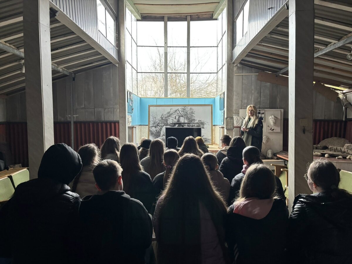 Po filmo leidomės į išskirtinę erdvę – pogrindžio spaustuvę. Mokiniai susidomėję apžiūrėjo slaptą įėjimą, autentišką aplinką, seną spausdinimo techniką ir klausėsi pasakojimų apie žmones, kurie čia dirbo rizikuodami savo laisve.