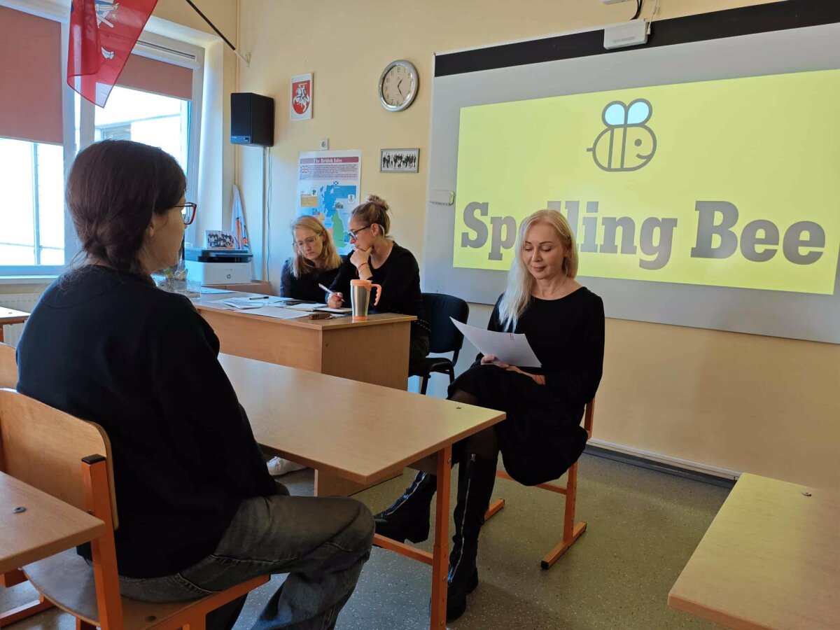 Mokykloje vyko 5–8 klasių mokinių anglų kalbos konkurso „Spelling Bee“ mokyklinis etapas. Šis konkursas – puiki galimybė mokiniams tobulinti anglų kalbos žinias, lavinti dėmesingumą ir pasitikėjimą savimi. Dalyviai turėjo paraidžiui ištarti įvairaus sudėtingumo anglų kalbos žodžius, todėl reikėjo ne tik gerų anglų kalbos rašybos įgūdžių, bet ir susikaupimo bei drąsos.