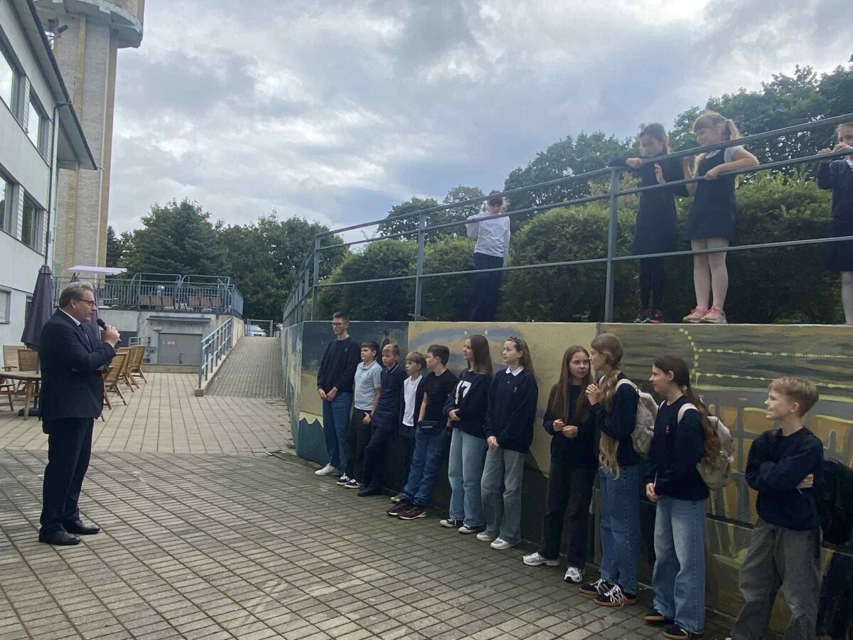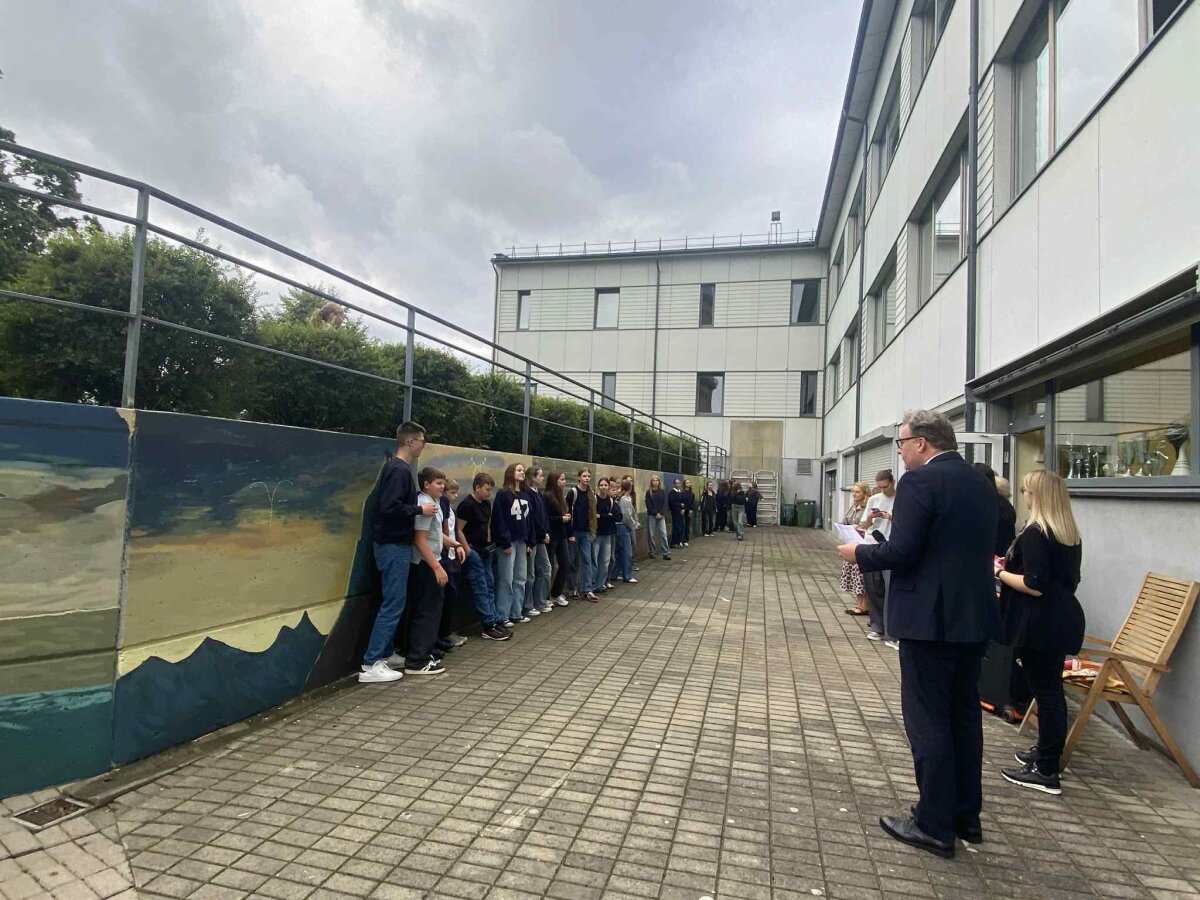 Minėdami žymaus Lietuvos dailininko ir kompozitoriaus Mikalojaus Konstantino Čiurlionio 150-ąsias gimimo metines, mokyklos vidiniame kieme atidarėme mokinių tapybos darbų parodą, skirtą šiai ypatingai sukakčiai. Parodoje eksponuojami darbai atspindi mokinių kūrybiškumą, įkvėptą Čiurlionio kūrinių spalvų, formų ir simbolikos.